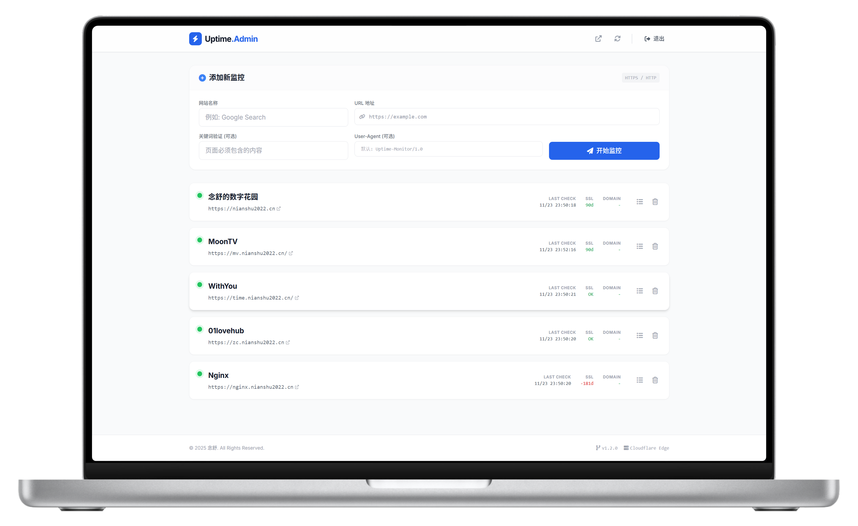 项目已开源,欢迎 Star ⭐: 👉 GitHub: https://github.com/nianshu2022/Uptime-Monitor